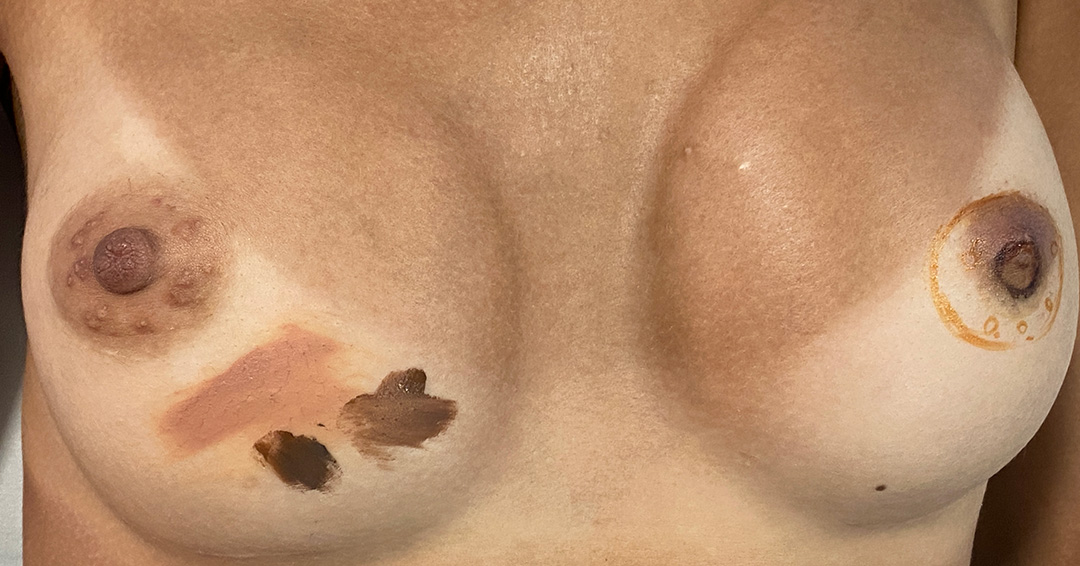 Camuflaje de cicatrices mamarias tras necrosis parcial o total en cambio de sexo